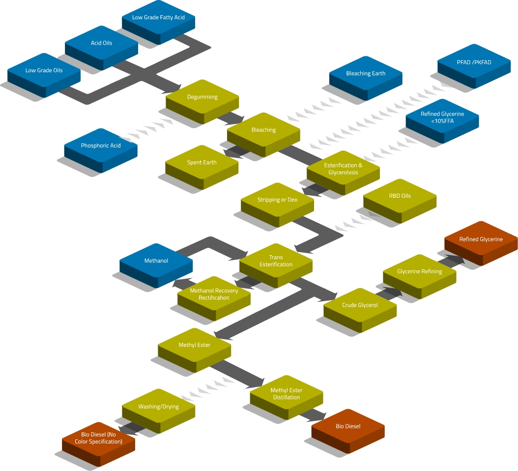 Les usines d’ester méthylique d’acide gras (biodiesel) de Mectech offrent une solution de carburant alternative pour lutter efficacement contre la pollution de l’air sur notre planète. Le biodiesel permet de réduire les émissions, est renouvelable, facilement biodégradable et peut être mélangé facilement avec les carburants traditionnels.