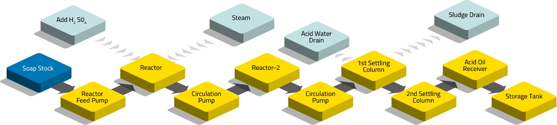 Le processus de fractionnement peut être effectué soit par lots, soit en continu, mais compte tenu du coût de production et de la qualité de l'huile acide, le processus continu est plus économique que le processus par lots.