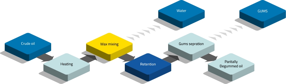 L'huile de soja brute contient une concentration relativement élevée de phospholipides par rapport aux autres huiles végétales. Le dégommage est un processus qui consiste à éliminer ces composants de l'huile de soja brute afin d'améliorer sa stabilité physique et de faciliter son raffinage ultérieur dans l'usine d'huile de soja. Au cours de ce processus, l'huile est traitée avec de l'eau afin de précipiter le phosphore hydratable, qui est ensuite éliminé par un système de séparation centrifuge. Les gommes obtenues sont séchées pour produire de la lécithine, qui est utilisée dans de nombreuses applications dans l'industrie alimentaire.